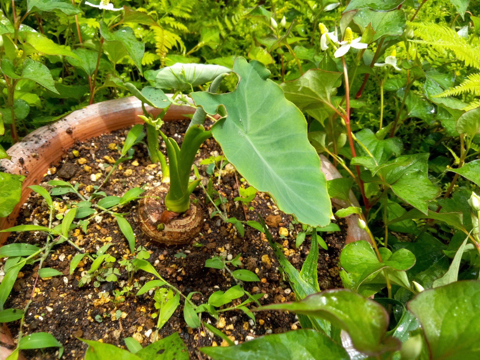 朝顔も里芋も。