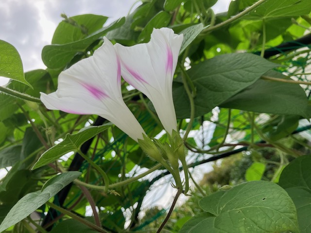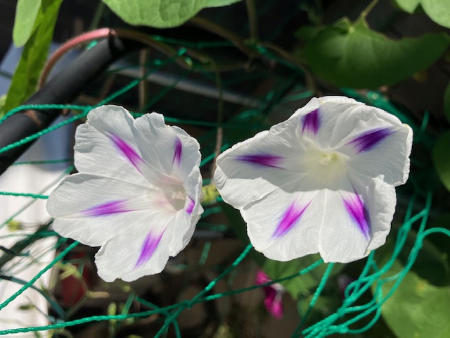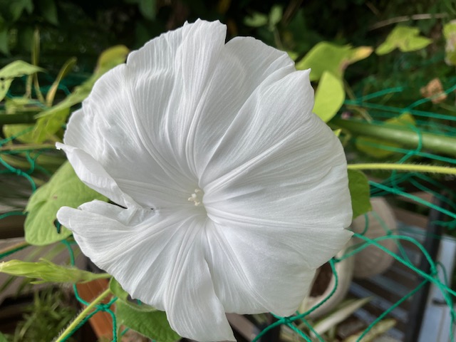 開いてます。ここまで、プランターの朝顔。
