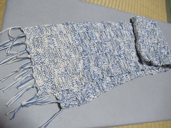 コットン糸2本どりでマフラー。