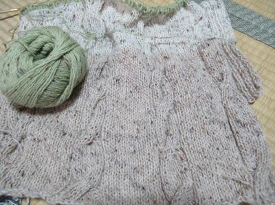 暑い日は上の編み物。